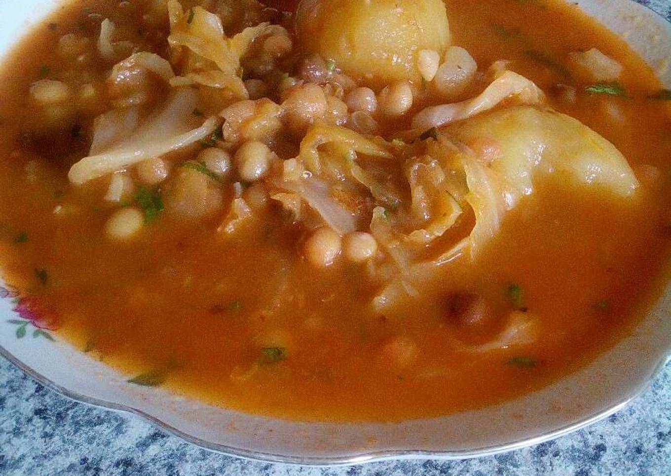 - Hacer hervir la papa pelada partida en 4 y el col lavada y desojada y la alverjita por 1/2 hora.