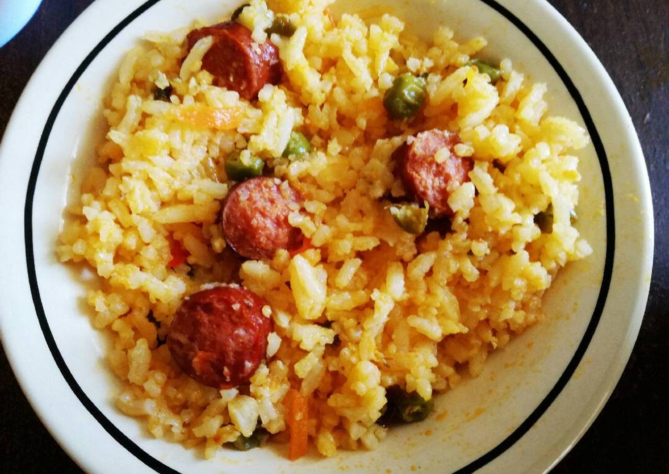 - Agregamos el arroz hervido e integramos todo, dejamos cocinar un ratito más y listo para servir. Si deseamos podemos acompañar cómo se hace acá en Ecuador con rodajas de plátano maduro fritas.