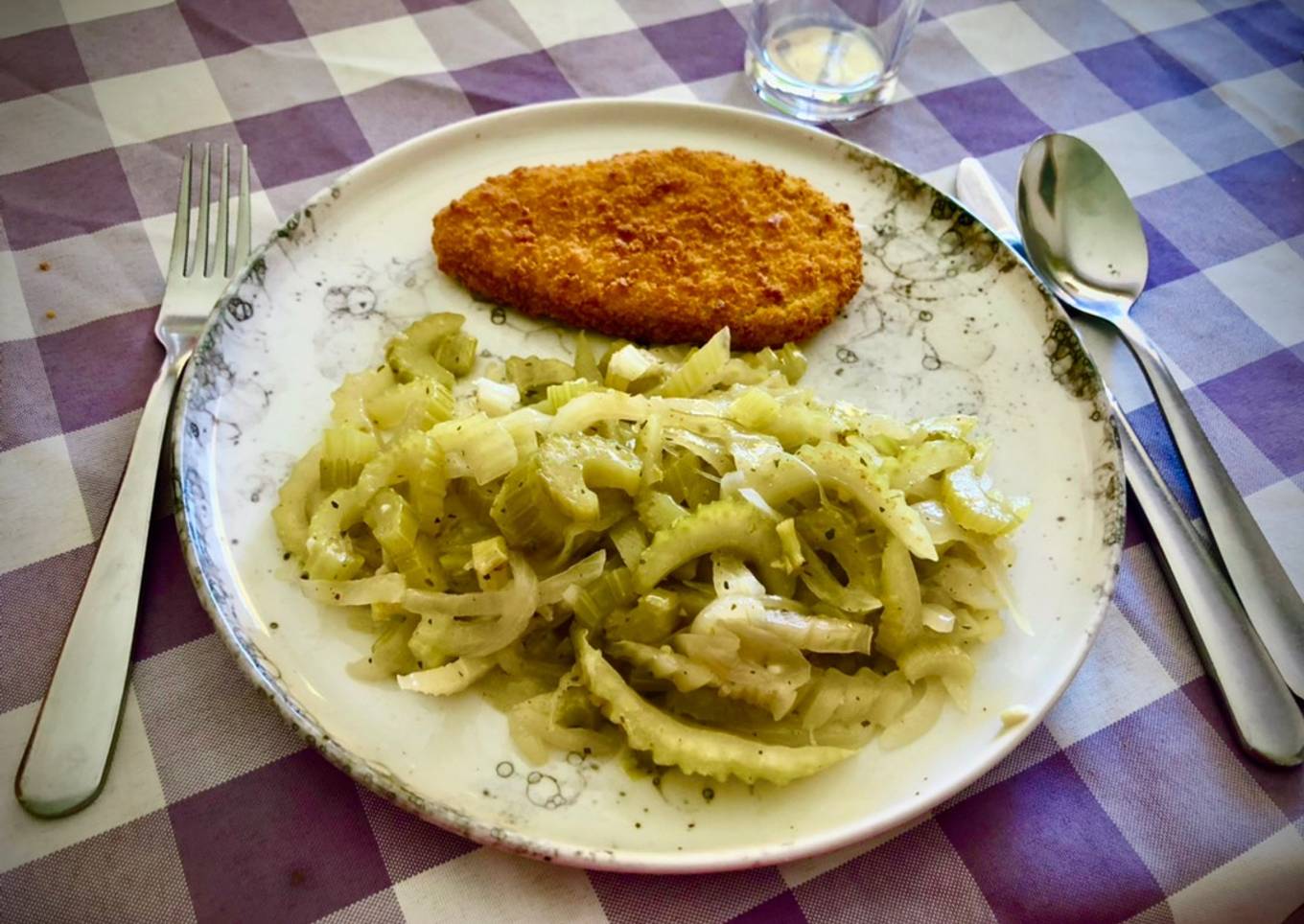 #Light #Saludable #Guarnición Quería hacer un guisado de verduras y escogí apio esta vez, nada más. Resultó muy suave de sabor. Quise experimentar dándole un toque de menta y quedó exquisito. Puede ser un plato #vegano si lo acompañas de arroz o de hamburguesas veganas. Lo mejor de este guiso es que gastas más calorías en digerirlo que las que te aporta la comida en sí lo que la hace una excelente alternativa como guarnición de quienes estén a dieta.