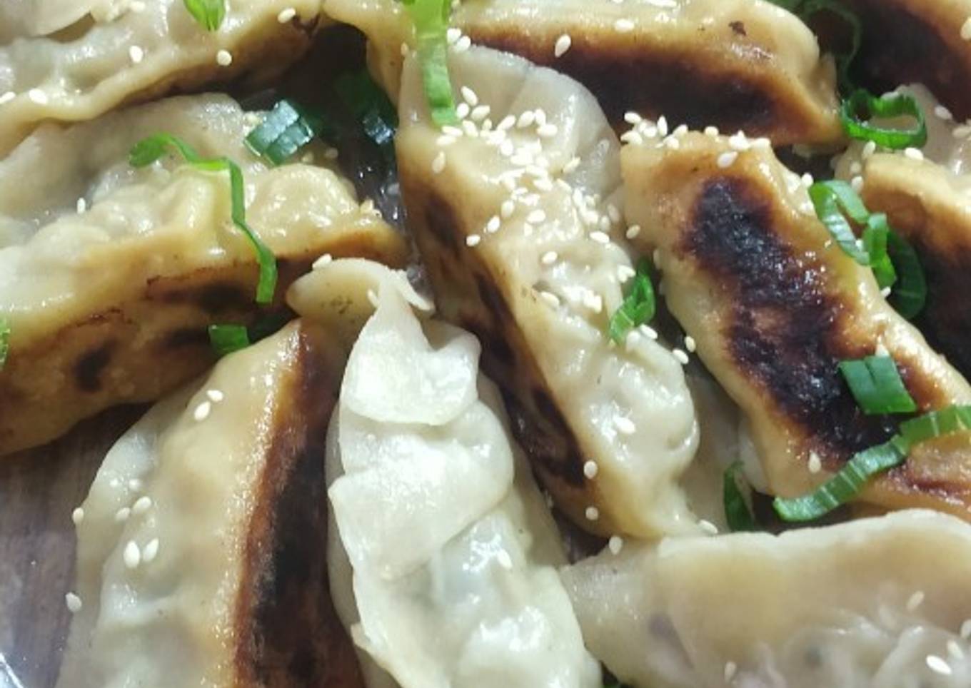 - En una sartén con tapa, primero agregar un poco de aceite y poner las gyoza una a una hasta que esté llena la sartén, dorar bien la parte de abajo y agregarle agua caliente (por que se cocinan con el vapor) dejar cocinar 5 a 6 minutos, retirar y servir!