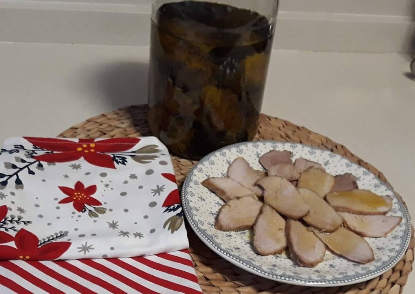 - Lo ponemos en maceración con sal, ajo, vinagre, laurel, las especias y un poco de aceite. Lo vamos a tener macerando 24 horas.