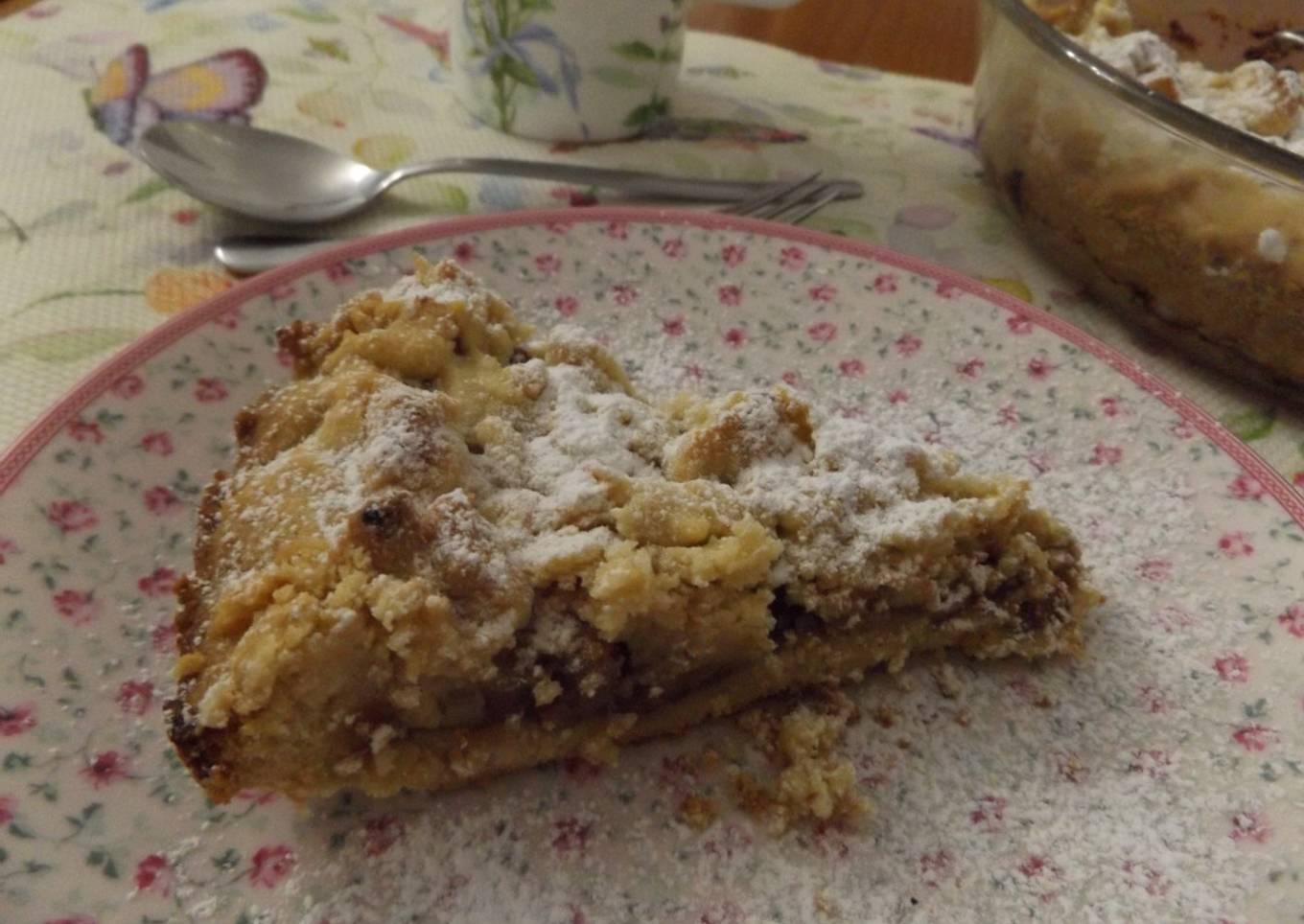 - Cubrir con el resto de la masa desmigada, sin aplastar. Llevar a horno precalentado a 200ºC unos 20´ o 25´, hasta que la cubierta esté dorada. Apagar el horno y dejar que la tarta se enfríe dentro. Servir espolvoreada con azúcar glas.