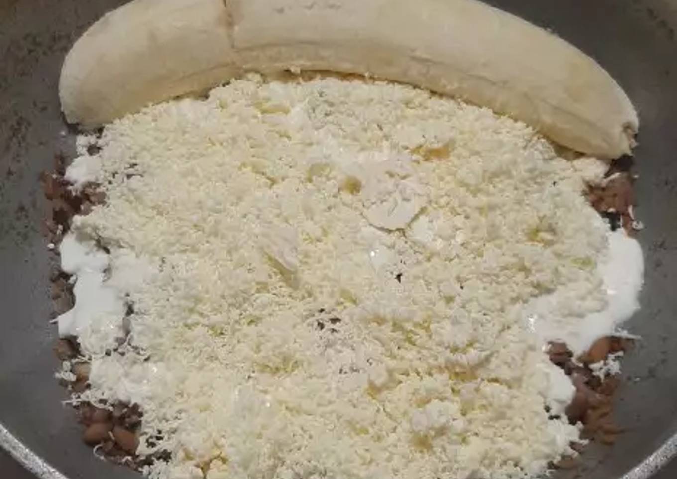 - Calienta el arroz del día de ayer, échale suero y queso rallado, un banano y listo